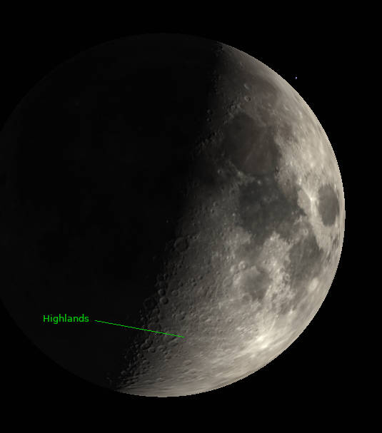 I consider the week centered on the first quarter moon to be the best time to view the Moon in a telescope. The best part of the Moon to view is near the terminator. The terminator is the sunrise line on the moon that we see before full moon, and the sunset line we see after full moon. The terminator is where the shadows are longest on the Moon and indeed on the Earth, with the low Sun in the sky. The Moon has lots of craters in its south or bottom part. We call that the lunar highlands, which is completely saturated with craters. Personally, I like craters. The darker lava plains that were initially called seas (the name stuck). They are flat and nearly featureless unless seen very close to the terminator, where the slight wrinkle ridges can be spotted.