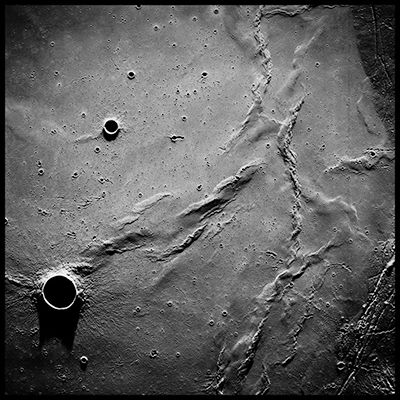 Wrinkle ridges on the floor of a lunar sea (lava plain). These are only visible at a very low sun angle near the terminator. I can find no information on this image, but apparently it was taken in lunar orbit. This is much sharper detail than can be seen from earth.