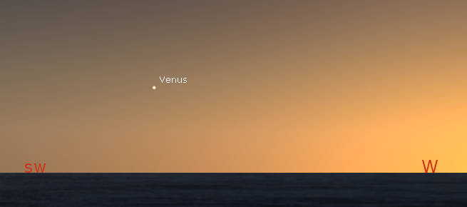Venus in evening twilight at 8:15 tonight, about 20 minutes after sunset, September 15, 2021. Created using Stellarium.