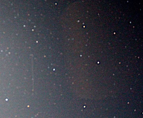 The thin vertical streak on the left side of the image is the Inspiration 4 spacecraft against the stars of Hercules in a 15 second exposure with a Canon Rebel T5 camera, f/3.5, ISO 6400, 18 mm fl. The famous Keystone of Hercules asterism is to the upper right of center. It’s a bit out of focus due to my problem seeing the screen at a high angle. (Getting old). It was quite dim, so I actually couldn’t see it in the moonlight. Credit: mine.