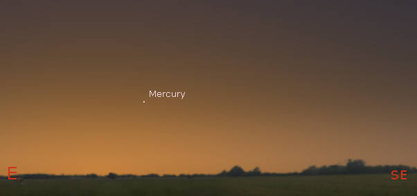 Mercury in morning twilight finder for 7:30 am tomorrow, October 28, 2021. Created using Stellarium.