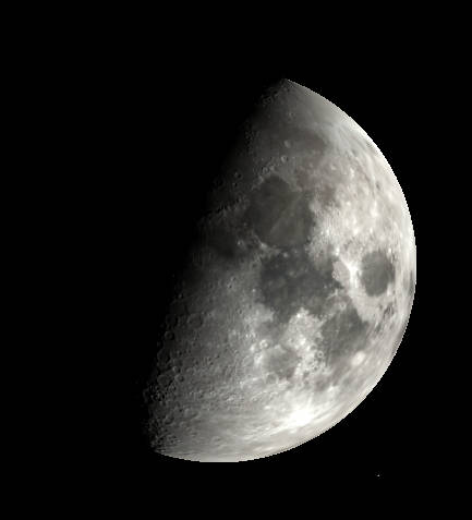 The slight gibbous Moon as it might appear tonight in binoculars or small telescope. It appears here right side up as it would appear in the sky at 9 pm. Created using Stellarium.