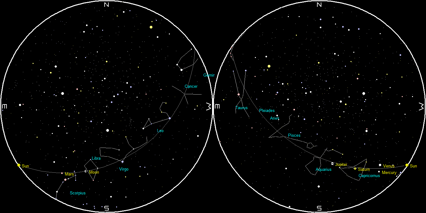 Let’s search for the naked-eye planets for this week. Venus will be visible in the southwestern evening twilight by 6:00 tonight. It’s a crescent in telescopes, and even binoculars now. It is moving closer to us, and now appears larger than Jupiter in telescopes. Venus will set at 6:35 pm, 31 minutes earlier than it set a week ago, which means that the Sun is catching up with it faster and faster. It has only 10 days left in the evening sky, Mercury might be spotted just below left of Venus. By 5:45 pm, both Jupiter and Saturn should be able to be spotted in the southwestern sky. Saturn will be dimmer, and to its lower right, halfway between Jupiter and Venus. Saturn will set at 7:35 pm, with Jupiter setting later at 9:31 pm.