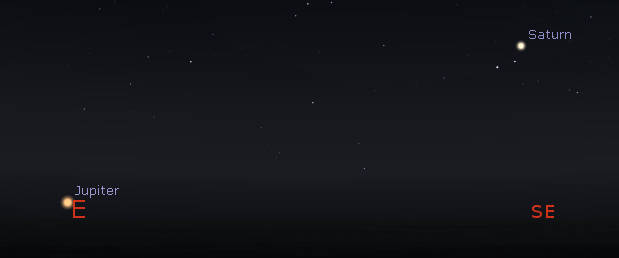 Jupiter rising, with Saturn in the southeast as it might be seen tonight, August 24, 2022. It reminds me of spotting Jupiter rising at our star party Monday night at the Sleeping Bear Dunes. Created using Stellarium.