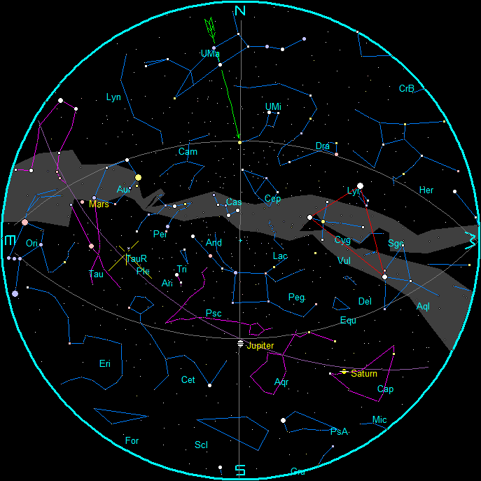• TauR on the evening star chart can be used as the radiant for the North and South Taurid meteor showers.