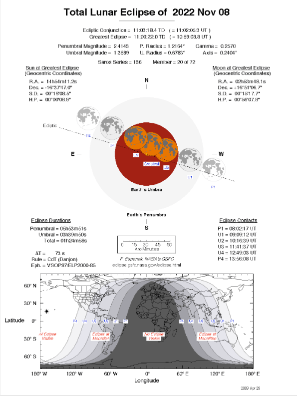 11/07/2022 – Ephemeris – There will be a total eclipse of the Moon in the hours before sunrise tomorrow morning