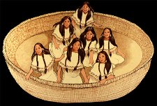 They are also the Seven Daughters of the Moon and Sun. They loved to dance and play, and when their father, the Moon was low in the sky, would descend to the Earth in a basket to do their thing. On one of their trips to the earth, one of them was captured by a human, and she ended up falling in love with him, and married him. When father Moon found out, he permanently dimmed her star, so now most people now only can spot 6 of the stars. This last bit seems to parallel the Greek story of the lost Pleiad.