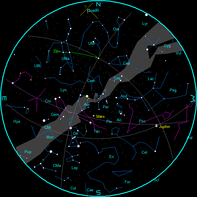 - QuadR on the star charts is the radiant of the Quadrantid meteor shower, which peaks on the 3rd, but is best seen in the early morning hours of the 3rd or 4th.
