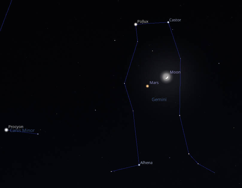 04/25/2023 – Ephemeris – The Moon is passing Mars today