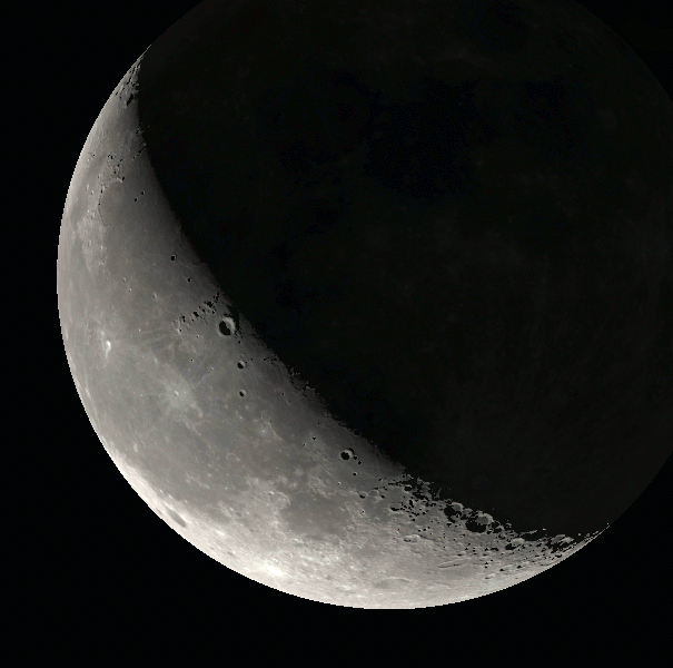 The Moon as it might appear in binoculars or telescope with selected features labeled tomorrow morning, August 10, 2023. Created using Stellarium, LibreOffice Draw for labels, and GIMP for the GIF animation.
