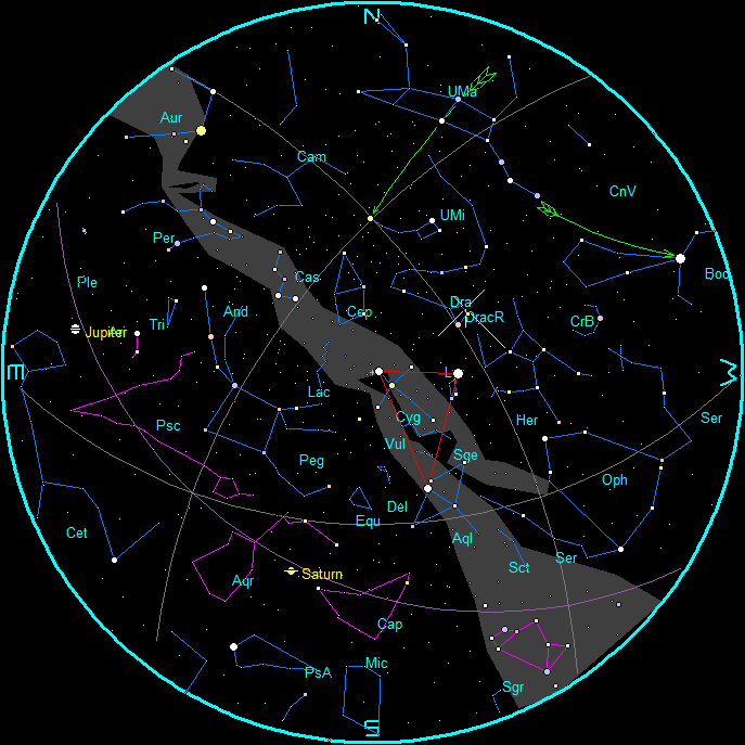 - DracR – Draconid Radiant – Peaks the 8th – Zenithal Hourly Rate < 10 with rare outbursts of a thousand an hour. It’s hindered this year by the full moon.