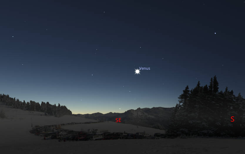 The real star of Bethlehem is probably not what is popularly depicted as a bright star in the sky, rather it was something subtle, only noticed by some astrologers. However, gracing our skies tonight we do have, in the morning and again in the evening, two bright star-like objects. I call them star-like objects because they’re planets. In the morning we have brilliant Venus off in the southeast at 7:30 in the morning, and early in the evening we have bright Jupiter in the south. Jupiter is bright enough that when Venus is not in the sky it is sometimes mistaken for it, although Venus would never be seen in the south* in the evening, it’s always too close to the Sun. Again have a Merry Christmas!