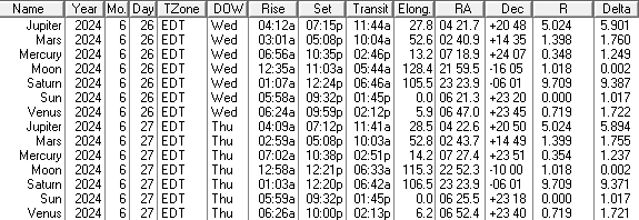 Ephemeris: 06/26/2024 – Where are the naked-eye planets this week?