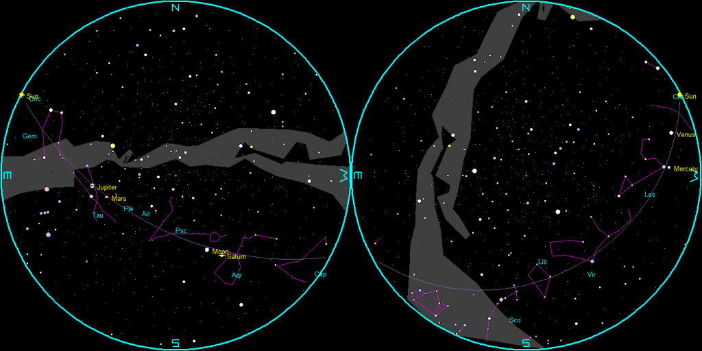 Let’s take our weekly look at the whereabouts of the naked-eye planets. Venus may still be too close to the direction of the Sun to be easily seen, it will set at 10:02 pm in the west-northwest. The best time to spot it will start about 9:40 pm or so. Mercury has been fading as its phase has become a crescent, as it’s heading back to the direction of the Sun. By 5:30 tomorrow morning, or about 50 minutes before sunrise, Saturn will be in the south below and right of the waning gibbous Moon, Mars and Jupiter will make a right triangle with the bright star Aldebaran in the east with Mars on top and Jupiter on the left. Saturn may look disappointing in telescopes this year since rings are nearly edge on and appear almost as a line through the planet. Saturn will rise at 11:14 pm, Mars will rise at 2:04 am, and finally Jupiter at 2:39 am.