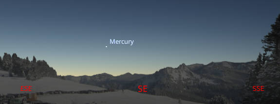 The planet Mercury should be seen low in the southeast by 7:30 AM, tomorrow morning December 19, 2024. Created using Stellarium.