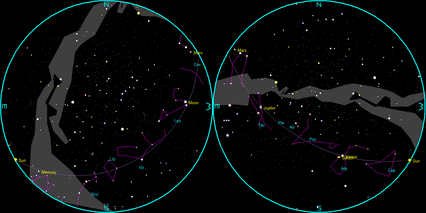 The astronomical event times given are for the Traverse City/Interlochen area of Michigan (EST, UT – 5 hours). Times will be different for other locations.
