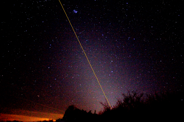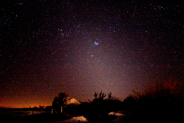 Zodiacal light will not be as obvious as it appears in the above photographs, where I got to play with brightness and contrast. It takes a bit of observation back and forth to spot the glow. Once found it will be easier to spot in future attempts. Zodiacal light can also be seen on fall mornings in the east before twilight begins. The glow will lean to the right instead of to the left.
