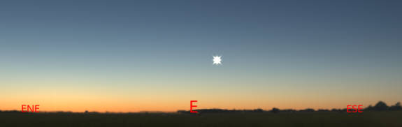 Venus, the returning Morning Star, low in the east at 6:30 AM. Created using Stellarium.