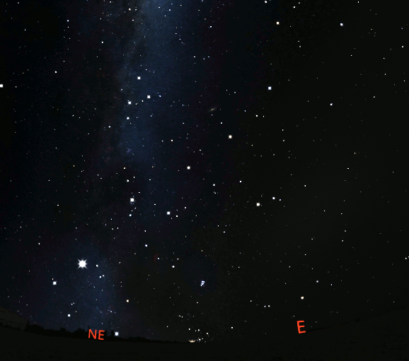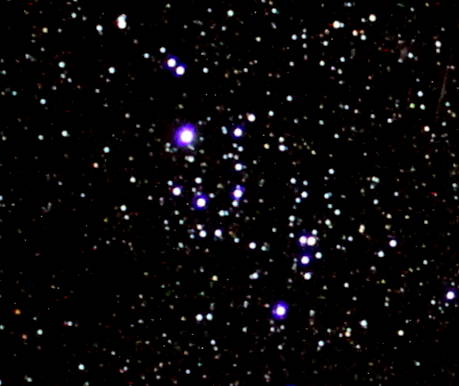 About a third the way from the east northeastern horizon to the zenith at 9 p.m. and below the letter W shaped constellation of Cassiopeia the queen is Perseus the hero. It’s kind of an odd shape for a hero, To me it looks kinda like the cartoon roadrunner. To those who’re mathematically inclined its shape is also like the Greek letter pi on its side. It’s two brightest stars are Mirfak and Algol the demon star, the still winking eye of Medusa. Look at the area around Mirfak with binoculars and a large group of stars just below naked eye visibility will appear. It’s called the Alpha Persei Association. That’s because Mirfak is also known as Alpha Persei. The group is about 560 light years away, which are farther away than the Pleiades, which is below and to the right of them.