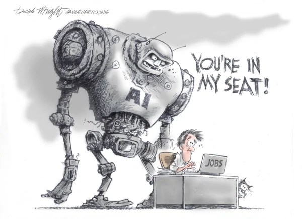 Let’s take one more look at AI this week. There is a real fear that artificial intelligence, AI, is displacing certain clerical jobs, and computer coding jobs. The latter is something I used to do. But I’m safe now, having retired 12 years ago. I have coded just about all the code I’ve ever needed to code. As AI takes more and more jobs, who’s gonna be able to afford to buy all the stuff the AI bots make? I’ve heard of some thoughts of a universal guaranteed income. How is that going to be funded? The rich, lower my taxes crowd, won’t go for that. Most people’s identity is defined by their job, what they do in their career. What could possibly replace that for most people?