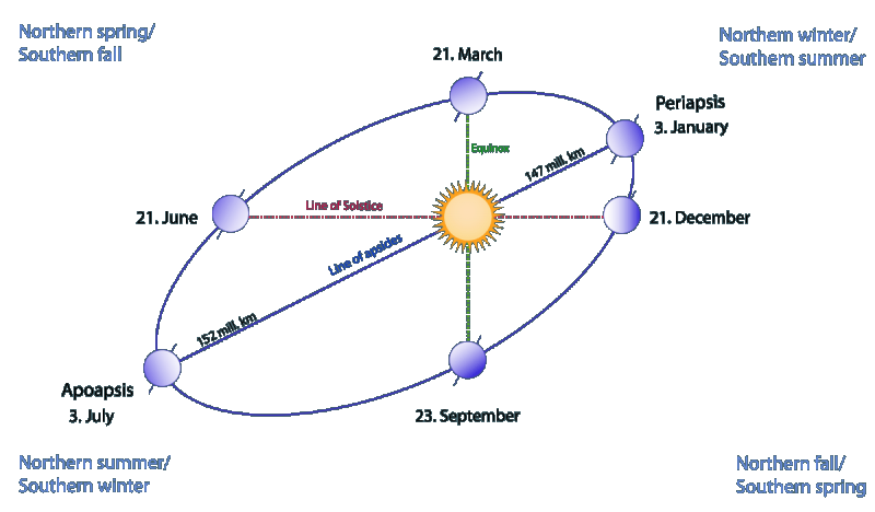 This afternoon at 5:59 PM, the Earth will reach aphelion from the Sun, the farthest it gets from it during the year. Earth will be 94 and a half million miles away from the Sun, a bit farther than our normal 93 million. In a planet’s orbit of the Sun, the Earth is no exception, it moves slowest when farthest from the Sun than when it’s nearest. It doesn’t make much difference in the amount of heat we get from the Sun being only 1½% farther than average. But it makes summer the longest season at 94 days, versus winter’s 89 days. OK, I know it doesn’t feel like it here in Northern Michigan, but count the days between each solstice and the next equinox.