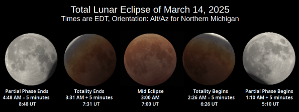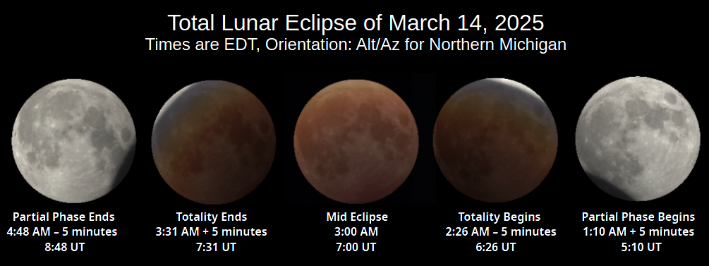 | Total Lunar Eclipse March 3, 2026 Events for the Grand Traverse area (Eastern Standard Time) |