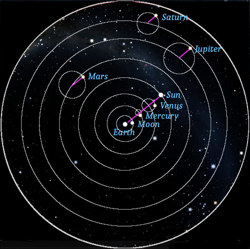 So what is the real reason that Jupiter is currently moving westward for a while in retrograde motion? Retrograde motion occurs in outer planets because the Earth is actually passing them. A simple analogy would be, if you were in a car that was passing another, the car you are passing would seem to move backwards compared to you. And that is exactly what’s happening. The Earth moves faster than the outer planets. Since the solar system is like a racetrack, and we get to lap these outer planets repeatedly when they are closest to us. For the inner planet it’s opposite. They go retrograde or backwards when they are passing us. This is a much simpler answer than all these circles upon circles the ancients invented.
