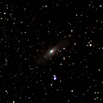 Low resolution and exposure view of M 31, the Great Andromeda Galaxy, simulating what it looks like in binoculars. Credit mine.