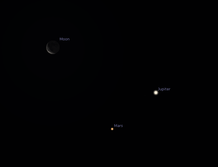 01/11/2018 – Ephemeris – This morning the Moon passes Jupiter and Mars