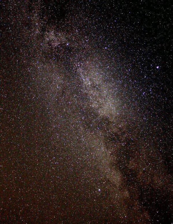 Now is the time the summer Milky Way is displayed to its fullest to the southern horizon. We have a week and a half before the Moon begins to encroach on our dark skies after 10 pm. City folk come to our area and are sometimes fooled by the brightness and expanse of the Milky Way and think it’s a cloud. Yes, those are clouds indeed, but they are clouds of stars. Binoculars will begin to show them to be millions of stars, each too faint to be seen individually to the eye, but whose combined glow give the impression of a luminous cloud. Binoculars are the ideal tool to explore the Milky Way. Objects still too fuzzy can be checked out with a telescope to reveal their true nature. The dark nights of August and September are my favorites.