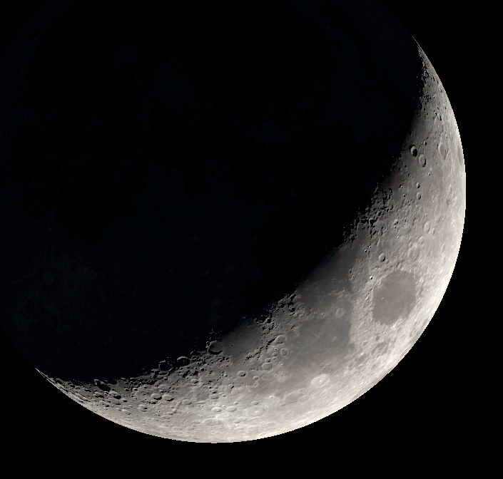 The Moon is a great first target for that Christmas telescope. Over the weekend we began a new lunar month so that the Moon appears as a crescent in the southwestern sky after sunset. The first time I looked at the Moon with the telescope or looked at anything in the sky, actually, I found it very difficult to aim the telescope correctly. The field of view of the telescope is very small compared to what you can see with the naked eye. Always start with the lowest power eyepiece because it gives the widest field of view for finding what you’re looking for. It does take a little practice to learn how to aim a telescope, but the moon is a wonderful object to look at because it’s really big and very bright.