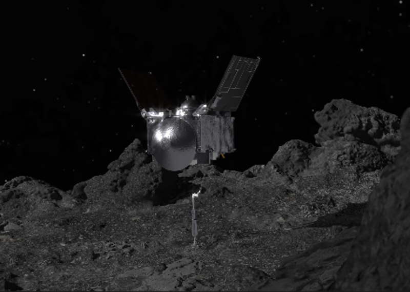 Artist depiction OSIRIS-REx TAG (Touch and Go) from video. Credit NASA.