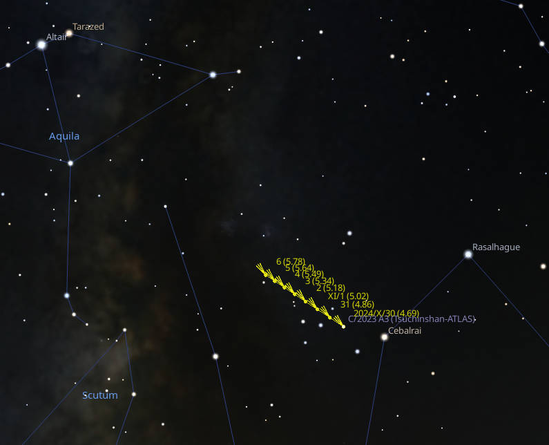 Ephemeris: 10/07/2024 – Comet Tsuchinshan-ATLAS will be visible starting Saturday Night