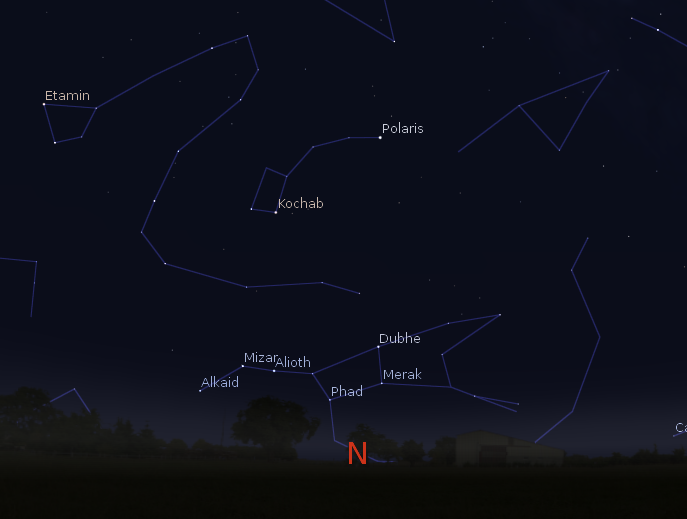 Ursa Major in the northeastern sky at 9 p.m., March 10, 2016. Created using Stellarium.