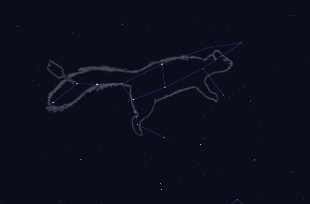 The Fisher heads towards the northern horizon. Created using Stellarium and an unknown artist which I took liberties with.