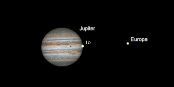 Jupiter’s satellites Io and Ganymede have a busy night tonight