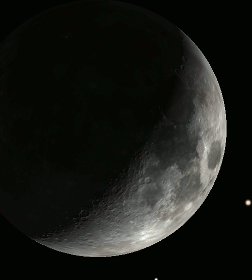This is Bob Moler with Ephemeris for Thursday, March 27th. Today the Sun will be up for 12 hours and 32 minutes, setting at 8:04, and it will rise tomorrow at 7:30. The Moon, 2 days before new, will rise at 7:08 tomorrow morning.