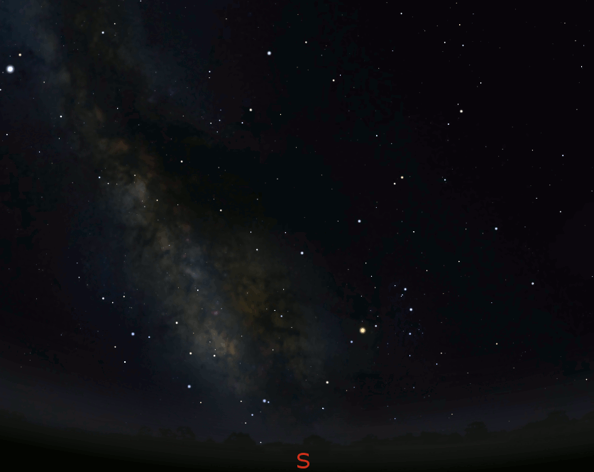 What most of us see in the stars here is maybe a bow drawn to shoot at the heart of Scorpius, or a stout little teapot as in the children’s song. It even has the Milky Way seeming to rise from the spout like steam. The teapot rises in the southeast as if standing upright, and as the night wears on, it rises and move westward, slowly tilting to pour out its tea on the southwestern horizon.