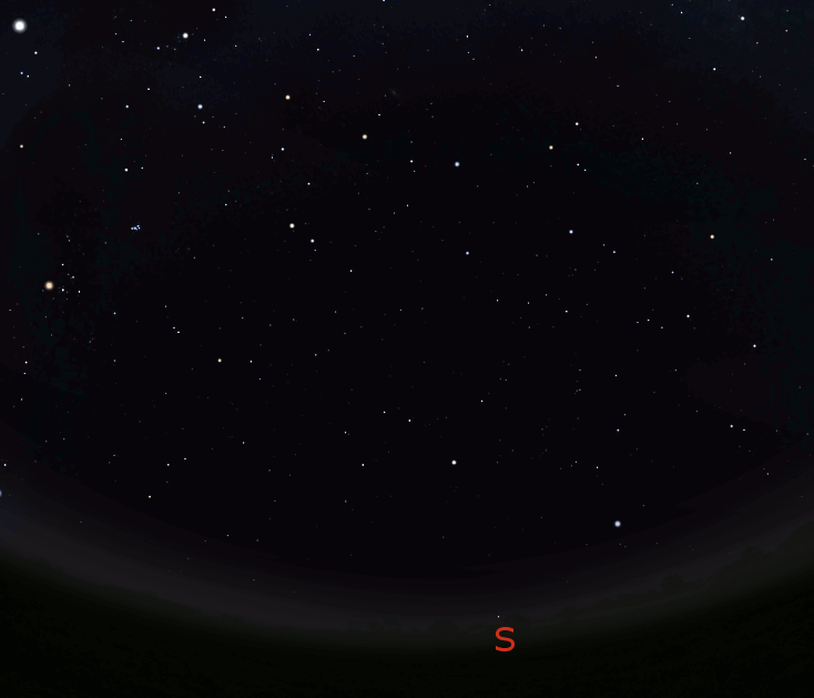 Saturn is well up in the east southeastern sky at 10 PM. This is the brightest “star” in that direction. Below it, at about the 4 o’clock position from it is Fomalhaut, which I sometimes call the loneliest star in the sky, because without Saturn or another planet in that direction it seems pretty much alone low in the south. Above and a bit to the left of Saturn is the Great Square of Pegasus A four star group standing on one corner which is the body of Pegasus the flying horse. Between Saturn and the Great Square is a faint and small circle of five or six stars called the Circlet, an asterism, which is a loop around one of the fish of Pisces the fish. Pisces is two fish held together by a long rope.
