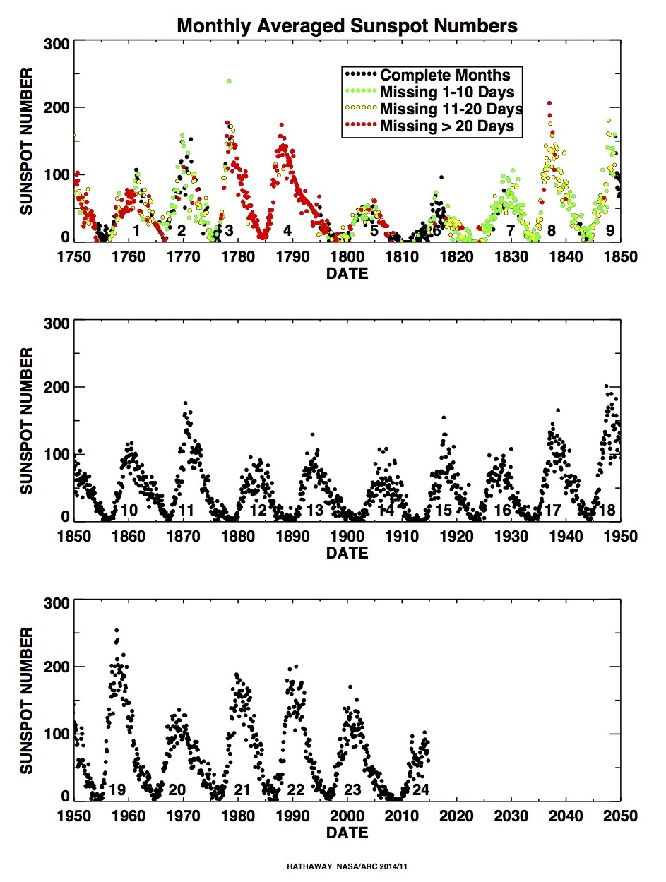 Here’s a link to NASA’s Sunspot Cycle page with a lot more information.