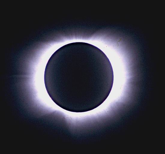 The solar corona displayed during the July 10, 1072 total solar eclipse from Prince Edward Island. Credit Bob Moler.