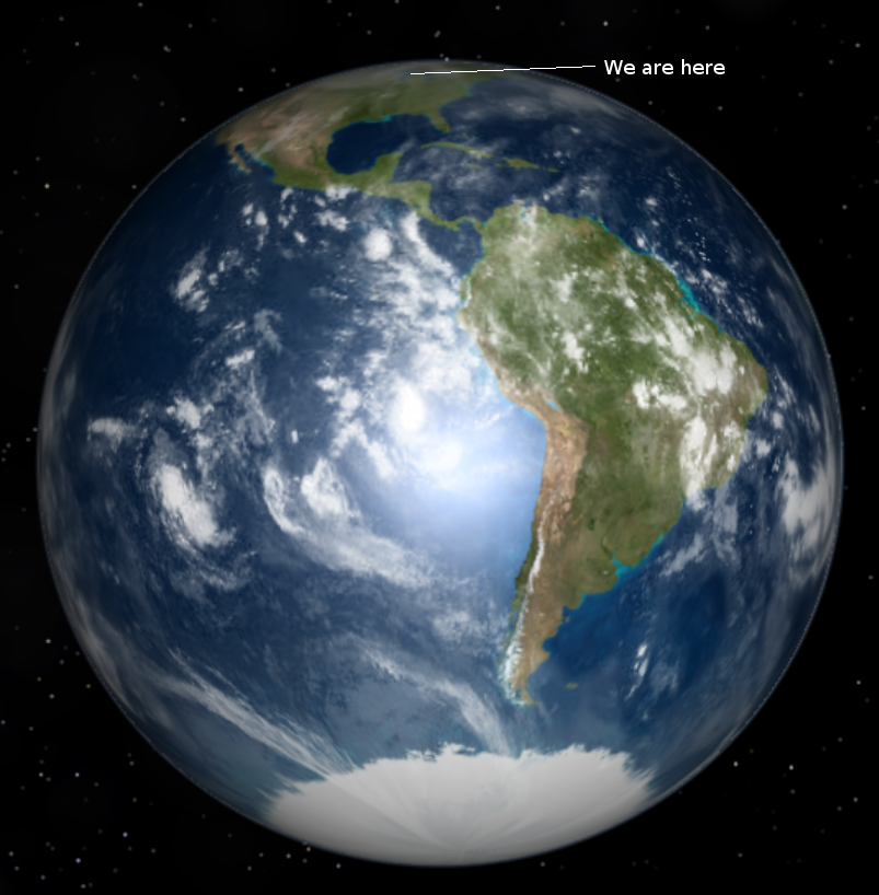 Not quite the solstice, this is the Earth on December 16th, 2015 taken by the EPIC camera on the DISCOVR spacecraft at the Sun-Earth L1 point, some 1.5 million miles (1 million km) from the Earth. Credit: NOAA.