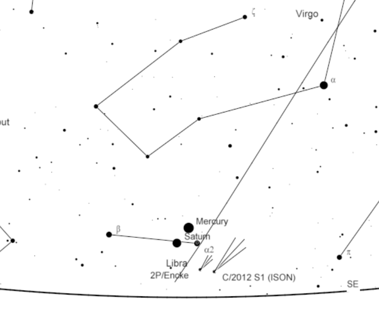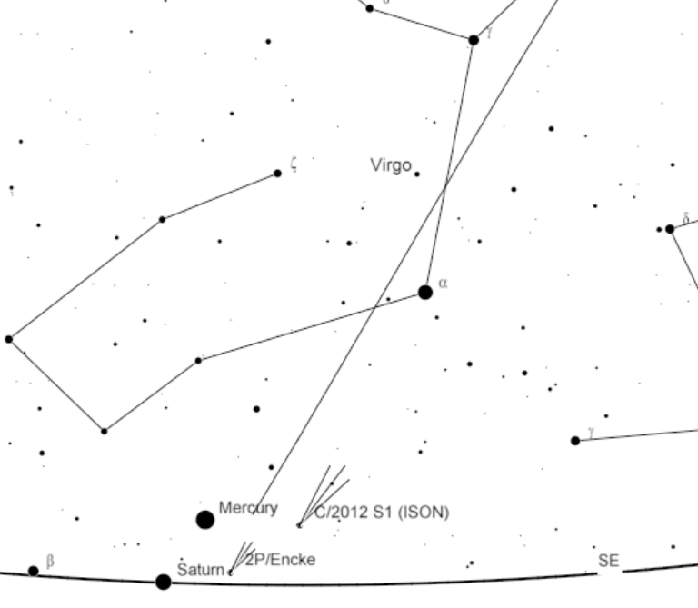 Finder charts for Comet ISON for this morning, Saturday, Sunday and Monday mornings.